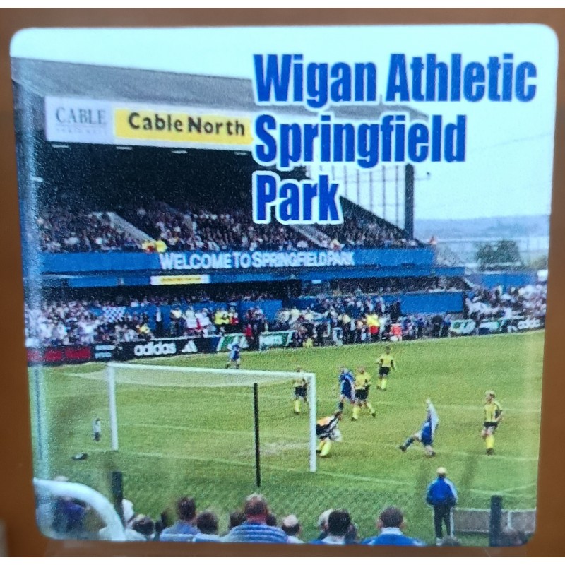 The famous original home of Wigan Athletic, Springfield Park, in a ceramic fridge magnet